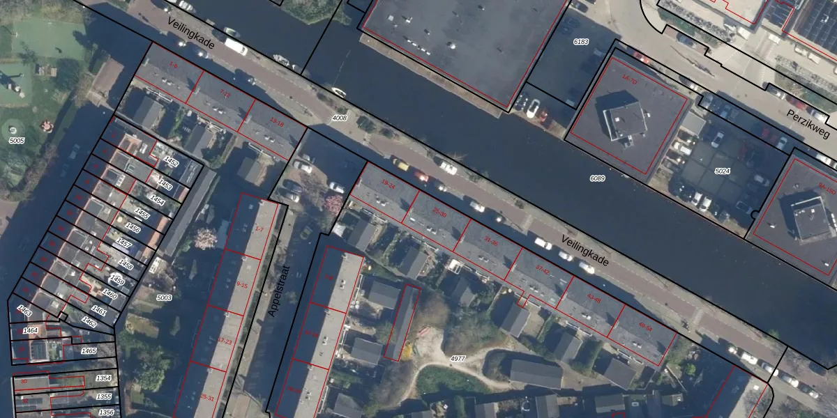 Veilingkade 27 is gelegen op kadastraal perceel LDN01O4977. Deze kadastrale aanduiding is uniek en wordt gebruikt door het Kadaster om eigendomsrechten en andere zakelijke rechten vast te leggen. Het perceel maakt onderdeel uit van de kadastrale gemeente Leiden.