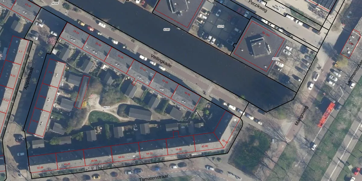 Het perceel waarop Veilingkade 50 staat heeft een oppervlakte van 6225 m². Dit is een zeer groot perceel. De perceeloppervlakte wordt geregistreerd door het Kadaster. Gedetailleerde informatie over de maten van dit perceel kunt u vinden in het rapport Kadastrale kaart met maatvoering van Veilingkade 50.