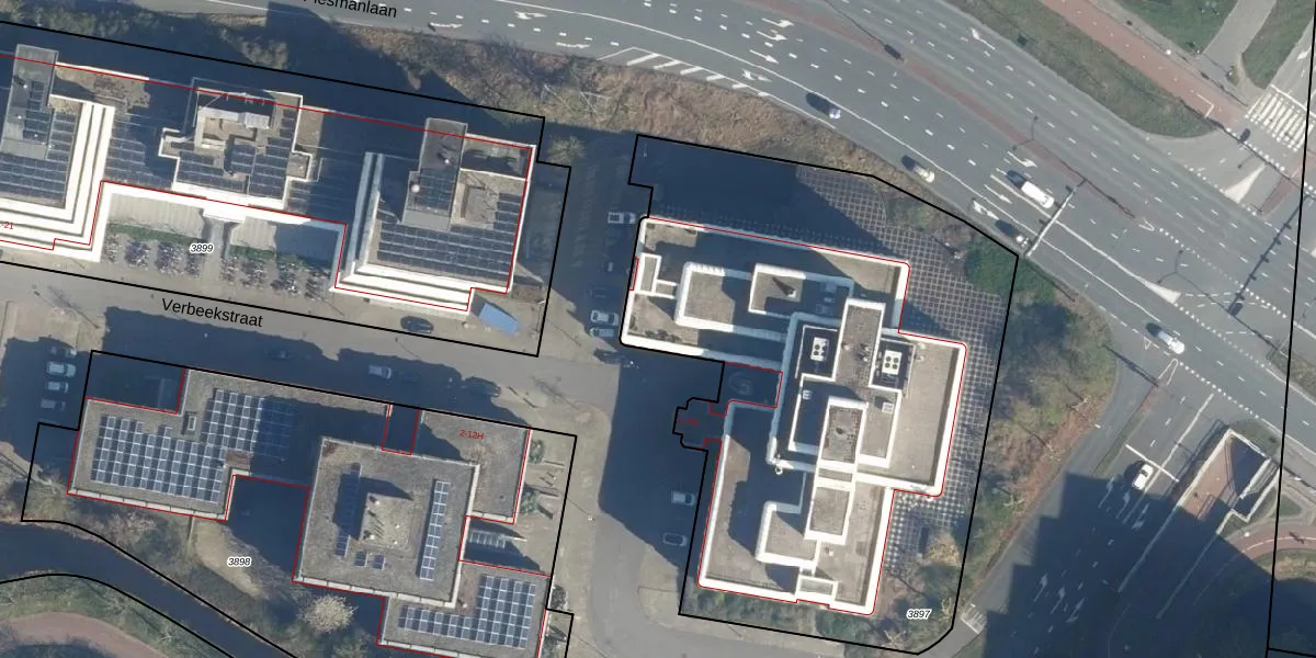 Het perceel waarop Verbeekstraat 1-A-6 staat heeft een oppervlakte van 3380 m². Dit is een zeer groot perceel. De perceeloppervlakte wordt geregistreerd door het Kadaster. Gedetailleerde informatie over de maten van dit perceel kunt u vinden in het rapport Kadastrale kaart met maatvoering van Verbeekstraat 1-A-6.