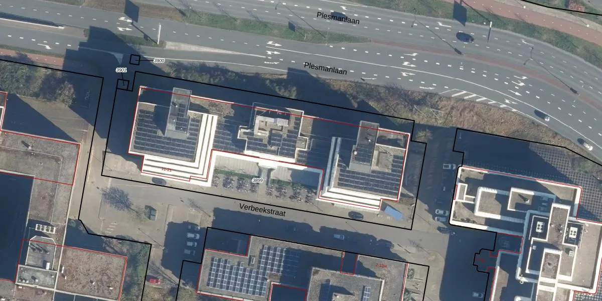 Het perceel waarop Verbeekstraat 15-C staat heeft een oppervlakte van 3670 m². Dit is een zeer groot perceel. De perceeloppervlakte wordt geregistreerd door het Kadaster. Gedetailleerde informatie over de maten van dit perceel kunt u vinden in het rapport Kadastrale kaart met maatvoering van Verbeekstraat 15-C.