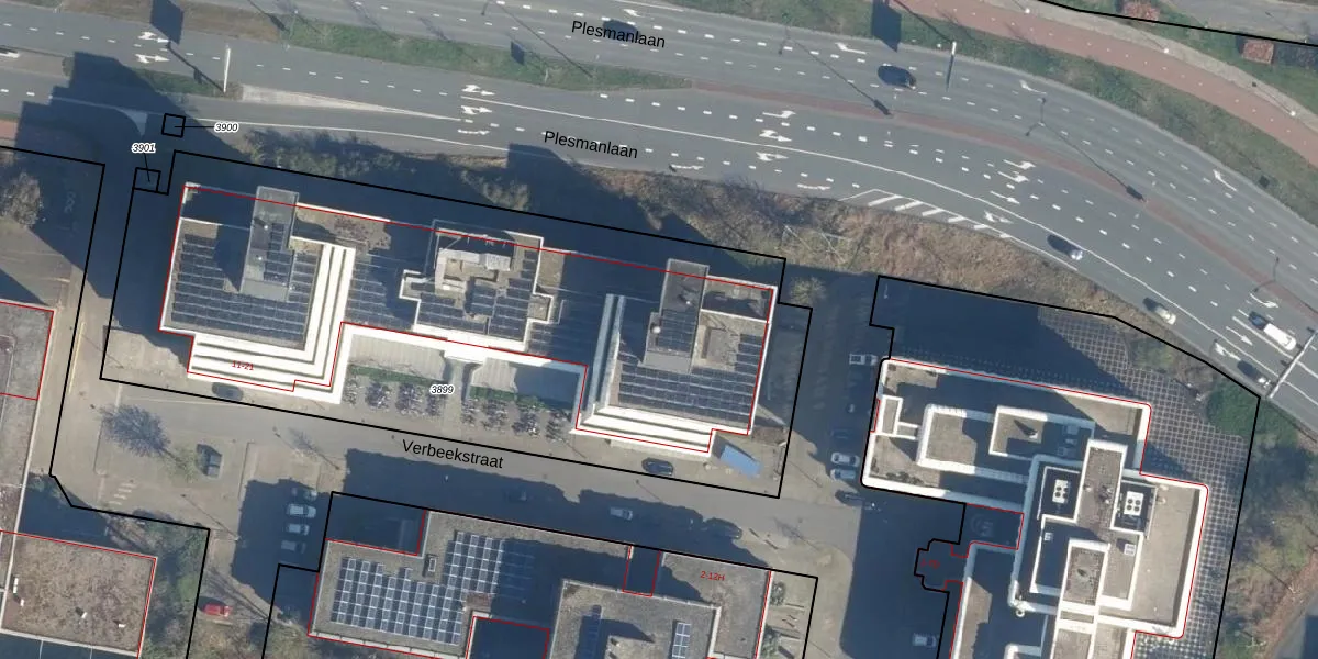 Het perceel waarop Verbeekstraat 19-G staat heeft een oppervlakte van 3670 m². Dit is een zeer groot perceel. De perceeloppervlakte wordt geregistreerd door het Kadaster. Gedetailleerde informatie over de maten van dit perceel kunt u vinden in het rapport Kadastrale kaart met maatvoering van Verbeekstraat 19-G.