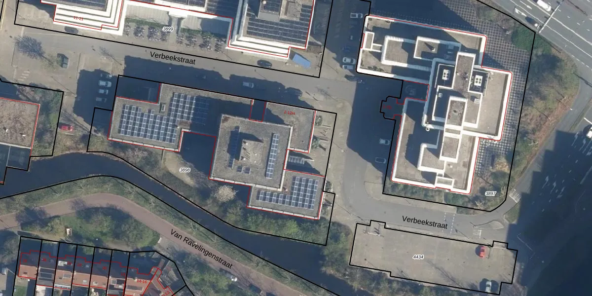 Het perceel waarop Verbeekstraat 2-M staat heeft een oppervlakte van 3015 m². Dit is een zeer groot perceel. De perceeloppervlakte wordt geregistreerd door het Kadaster. Gedetailleerde informatie over de maten van dit perceel kunt u vinden in het rapport Kadastrale kaart met maatvoering van Verbeekstraat 2-M.
