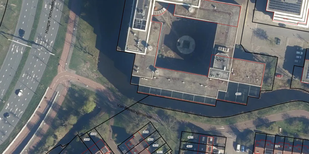 Het adres is gelegen op perceel 3903 in de sectie X en de kadastrale gemeente Leiden. De kadastrale aanduiding is aldus LDN01-X-3903. De gemiddelde perceeloppervlakte in de kadastrale gemeente Leiden is 703,94 m². Dit perceel is met zijn 7130 m² dus groter dan gemiddeld. De grootste perceeloppervlakte in de kadastrale gemeente is 51,8 ha. De kleinste oppervlakte bedraagt 0 m². Er zijn 429 adressen aanwezig op het perceel. In de Basisregistratie Kadaster (BRK) werden de grenzen van het perceel geregistreerd op 29-08-2003.