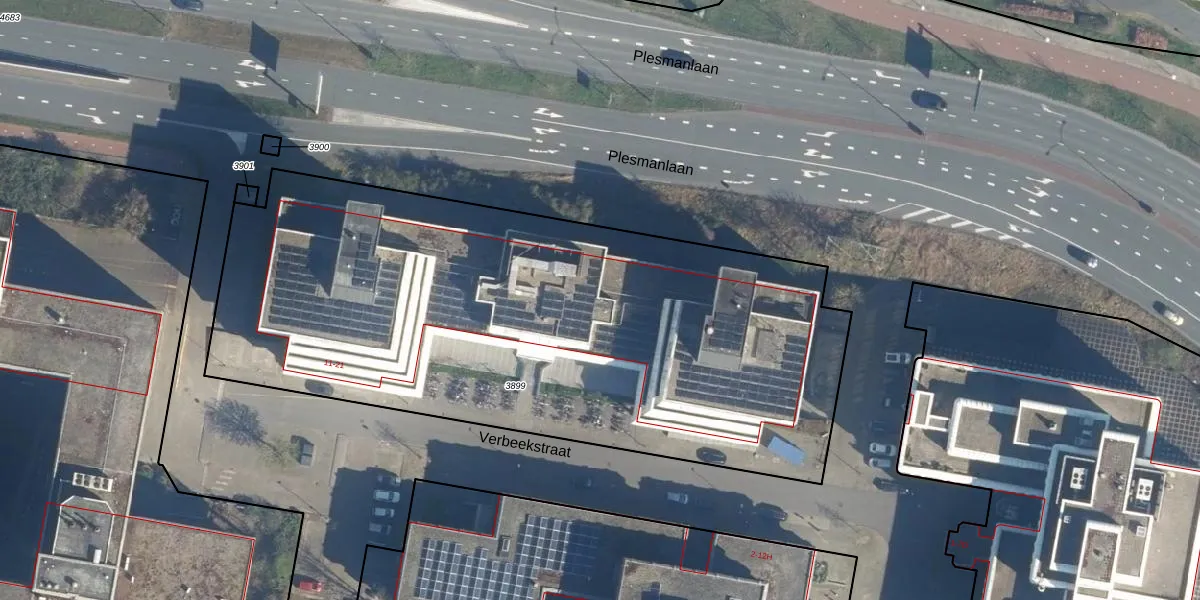 Het perceel waarop Verbeekstraat 27-F staat heeft een oppervlakte van 3670 m². Dit is een zeer groot perceel. De perceeloppervlakte wordt geregistreerd door het Kadaster. Gedetailleerde informatie over de maten van dit perceel kunt u vinden in het rapport Kadastrale kaart met maatvoering van Verbeekstraat 27-F.