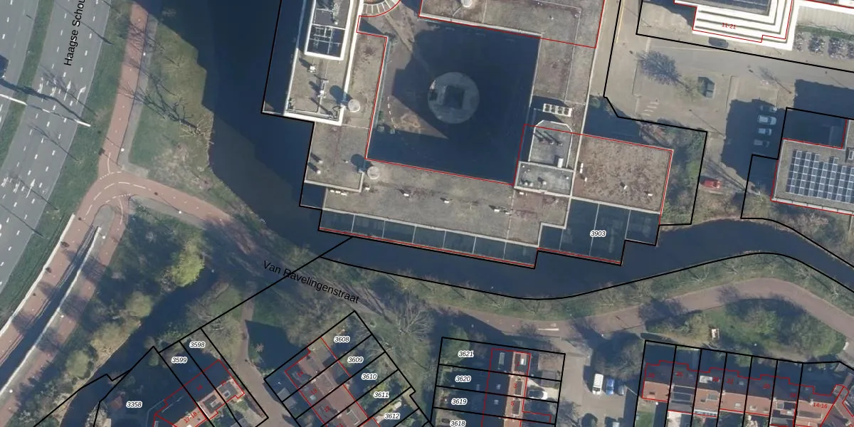 Het adres is gelegen op perceel 3903 in de sectie X en de kadastrale gemeente Leiden. De kadastrale aanduiding is aldus LDN01-X-3903. De gemiddelde perceeloppervlakte in de kadastrale gemeente Leiden is 703,94 m². Dit perceel is met zijn 7130 m² dus groter dan gemiddeld. Het grootste perceel in de kadastrale gemeente is 51,8 ha. Het kleinste perceel heeft een oppervlakte van 0 m². Op het perceel liggen in totaal 429 adressen. De huidige grenzen van het perceel zijn digitaal in de Basisregistratie Kadaster (BRK) geregistreerd op 29-08-2003.