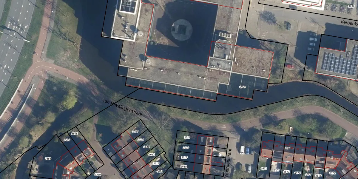 Het perceel waarop Verbeekstraat 374 staat heeft een oppervlakte van 7130 m². Dit is een zeer groot perceel. De perceeloppervlakte wordt geregistreerd door het Kadaster. Gedetailleerde informatie over de maten van dit perceel kunt u vinden in het rapport Kadastrale kaart met maatvoering van Verbeekstraat 374.