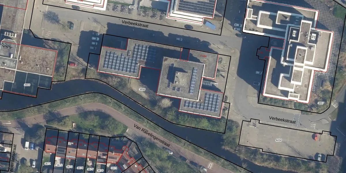 Het perceel waarop Verbeekstraat 8-B staat heeft een oppervlakte van 3015 m². Dit is een zeer groot perceel. De perceeloppervlakte wordt geregistreerd door het Kadaster. Gedetailleerde informatie over de maten van dit perceel kunt u vinden in het rapport Kadastrale kaart met maatvoering van Verbeekstraat 8-B.