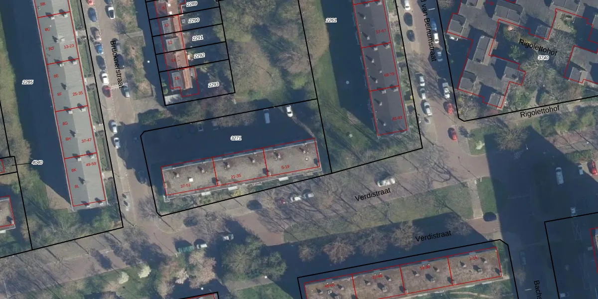 Verdistraat 11 is gelegen op kadastraal perceel LDN01O3271. Deze kadastrale aanduiding is uniek en wordt gebruikt door het Kadaster om eigendomsrechten en andere zakelijke rechten vast te leggen. Het perceel maakt onderdeel uit van de kadastrale gemeente Leiden.