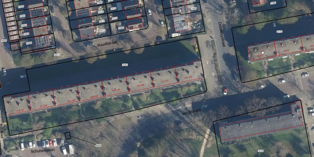 Het perceel waarop het adres ligt is LDN01-O-2542. De afkorting 'LDN01' staat voor kadastrale gemeente Leiden. De oppervlakte van het perceel is 4713 m². Dat is groter dan gemiddeld in Leiden, waar de gemiddelde perceeloppervlakte op 703,94 m² ligt. Het kleinste perceel in de kadastrale gemeente is 0 m² groot. De grootste perceeloppervlakte is 51,8 ha. Op het perceel zijn 78 adressen aanwezig. De huidige grenzen van het perceel zijn digitaal in de Basisregistratie Kadaster (BRK) geregistreerd op 07-12-2007.