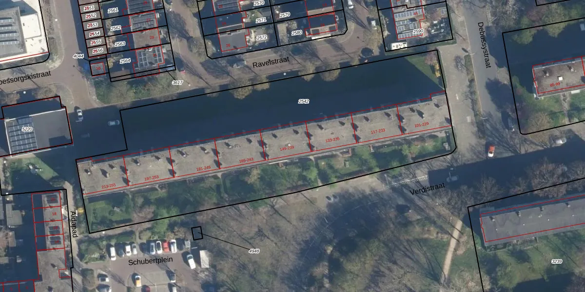 Verdistraat 151 is gelegen op kadastraal perceel LDN01O2542. Deze kadastrale aanduiding is uniek en wordt gebruikt door het Kadaster om eigendomsrechten en andere zakelijke rechten vast te leggen. Het perceel maakt onderdeel uit van de kadastrale gemeente Leiden.