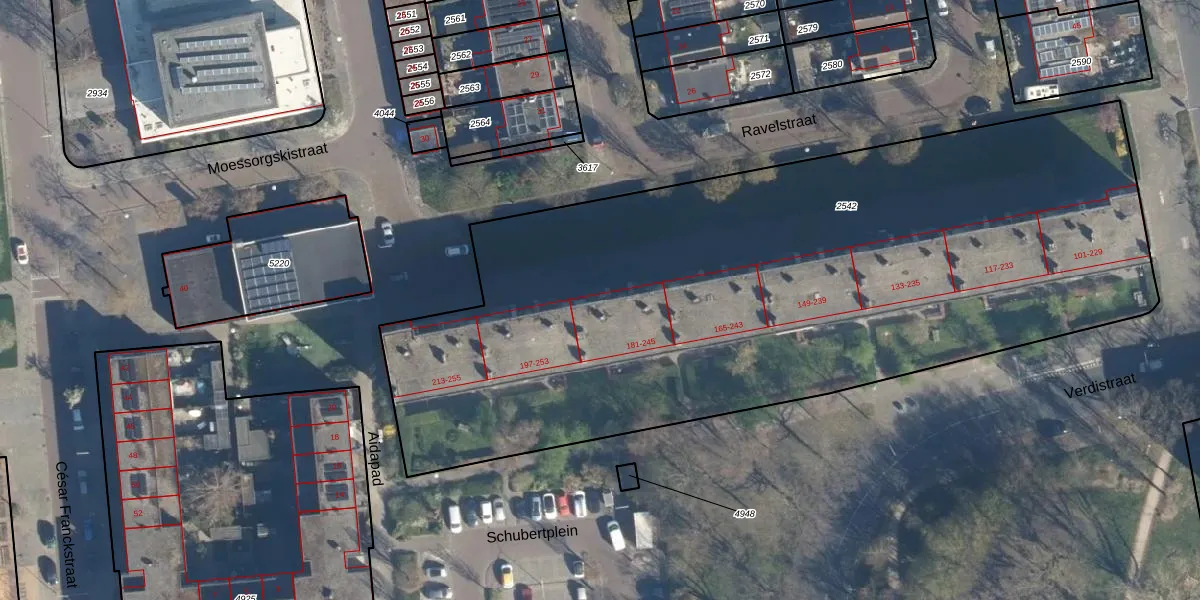 Verdistraat 249 is gelegen op kadastraal perceel LDN01O2542. Deze kadastrale aanduiding is uniek en wordt gebruikt door het Kadaster om eigendomsrechten en andere zakelijke rechten vast te leggen. Het perceel maakt onderdeel uit van de kadastrale gemeente Leiden.