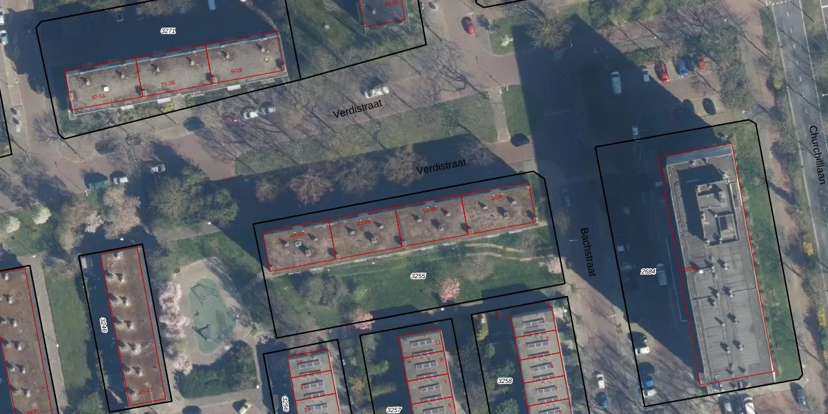 Het perceel waarop Verdistraat 26 staat heeft een oppervlakte van 1995 m². Dit is een zeer groot perceel. De perceeloppervlakte wordt geregistreerd door het Kadaster. Gedetailleerde informatie over de maten van dit perceel kunt u vinden in het rapport Kadastrale kaart met maatvoering van Verdistraat 26.