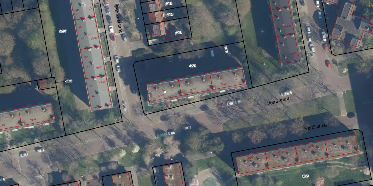 Verdistraat 29 is gelegen op kadastraal perceel LDN01O3271. Deze kadastrale aanduiding is uniek en wordt gebruikt door het Kadaster om eigendomsrechten en andere zakelijke rechten vast te leggen. Het perceel maakt onderdeel uit van de kadastrale gemeente Leiden.