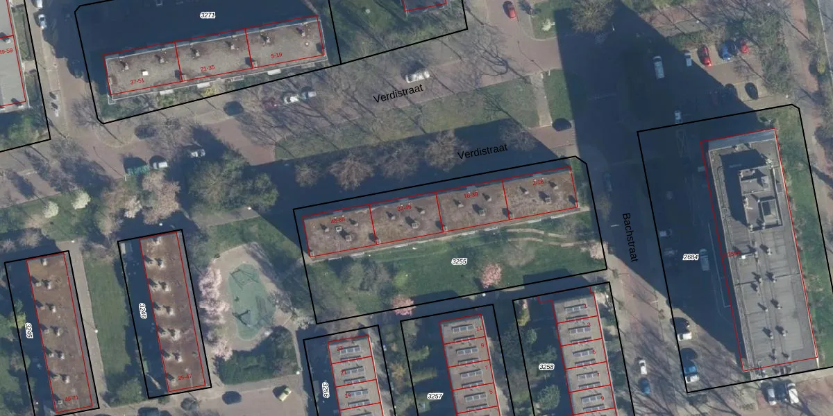 Het perceel waarop Verdistraat 40 staat heeft een oppervlakte van 1995 m². Dit is een zeer groot perceel. De perceeloppervlakte wordt geregistreerd door het Kadaster. Gedetailleerde informatie over de maten van dit perceel kunt u vinden in het rapport Kadastrale kaart met maatvoering van Verdistraat 40.