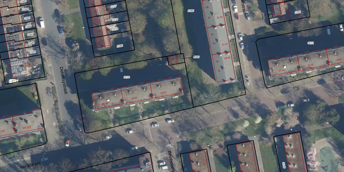 Verdistraat 57 is gelegen op kadastraal perceel LDN01O3270. Deze kadastrale aanduiding is uniek en wordt gebruikt door het Kadaster om eigendomsrechten en andere zakelijke rechten vast te leggen. Het perceel maakt onderdeel uit van de kadastrale gemeente Leiden.