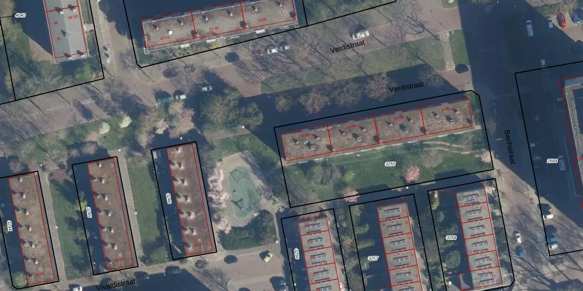 Het perceel waarop Verdistraat 60 staat heeft een oppervlakte van 1995 m². Dit is een zeer groot perceel. De perceeloppervlakte wordt geregistreerd door het Kadaster. Gedetailleerde informatie over de maten van dit perceel kunt u vinden in het rapport Kadastrale kaart met maatvoering van Verdistraat 60.