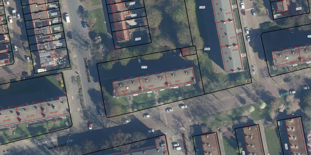 Verdistraat 75 is gelegen op kadastraal perceel LDN01O3270. Deze kadastrale aanduiding is uniek en wordt gebruikt door het Kadaster om eigendomsrechten en andere zakelijke rechten vast te leggen. Het perceel maakt onderdeel uit van de kadastrale gemeente Leiden.