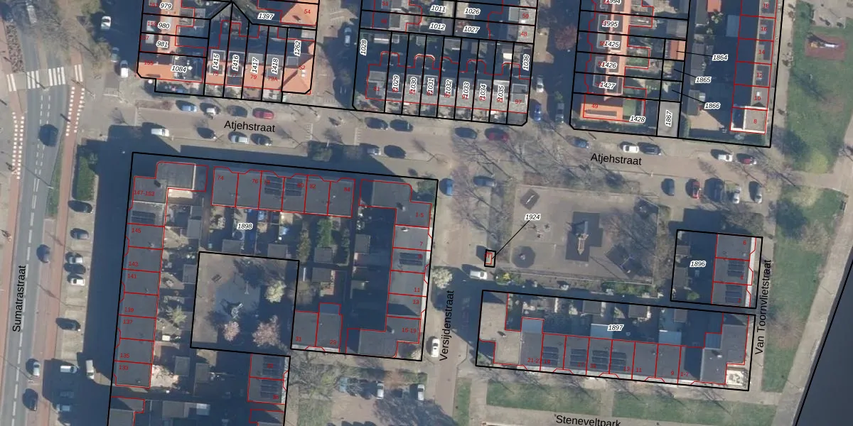 Het perceel waarop Versijdenstraat 1 staat heeft een oppervlakte van 3880 m². Dit is een zeer groot perceel. De perceeloppervlakte wordt geregistreerd door het Kadaster. Gedetailleerde informatie over de maten van dit perceel kunt u vinden in het rapport Kadastrale kaart met maatvoering van Versijdenstraat 1.