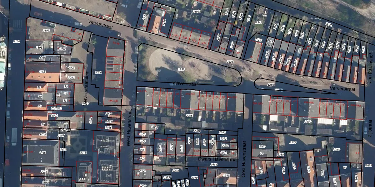 Het perceel waarop Ververstraat 27-B staat heeft een oppervlakte van 1200 m². Dit is een zeer groot perceel. De perceeloppervlakte wordt geregistreerd door het Kadaster. Gedetailleerde informatie over de maten van dit perceel kunt u vinden in het rapport Kadastrale kaart met maatvoering van Ververstraat 27-B.