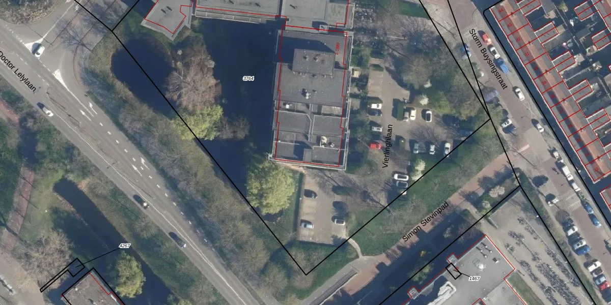 Het perceel waarop het adres ligt is LDN01-X-3764. De afkorting 'LDN01' staat voor kadastrale gemeente Leiden. De oppervlakte van het perceel is 7165 m². Dat is groter dan gemiddeld in Leiden, waar de gemiddelde perceeloppervlakte op 703,94 m² ligt. De grootste perceeloppervlakte in de kadastrale gemeente is 51,8 ha. De kleinste oppervlakte bedraagt 0 m². Op het perceel liggen in totaal 155 adressen. In de Basisregistratie Kadaster (BRK) werden de grenzen van het perceel geregistreerd op 05-12-2008.