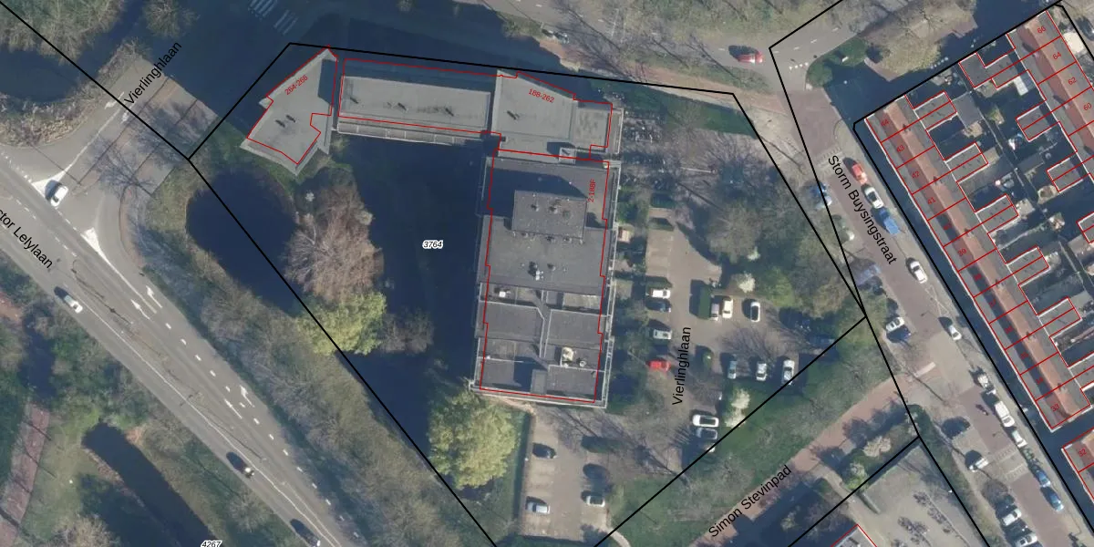 Het perceel waarop het adres ligt is LDN01-X-3764. De afkorting 'LDN01' staat voor kadastrale gemeente Leiden. De oppervlakte van het perceel is 7165 m². Dat is groter dan gemiddeld in Leiden, waar de gemiddelde perceeloppervlakte op 703,94 m² ligt. De grootste perceeloppervlakte in de kadastrale gemeente is 51,8 ha. De kleinste oppervlakte bedraagt 0 m². Op het perceel liggen in totaal 155 adressen. De huidige grenzen van het perceel zijn digitaal in de Basisregistratie Kadaster (BRK) geregistreerd op 05-12-2008.