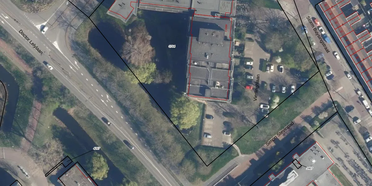 Het adres is gelegen op perceel 3764 in de sectie X en de kadastrale gemeente Leiden. De kadastrale aanduiding is aldus LDN01-X-3764. De oppervlakte van het perceel is 7165 m². Dat is groter dan gemiddeld in Leiden, waar de gemiddelde perceeloppervlakte op 703,94 m² ligt. Het grootste perceel in de kadastrale gemeente is 51,8 ha. Het kleinste perceel heeft een oppervlakte van 0 m². Op het perceel zijn 155 adressen aanwezig. In de Basisregistratie Kadaster (BRK) werden de grenzen van het perceel geregistreerd op 05-12-2008.