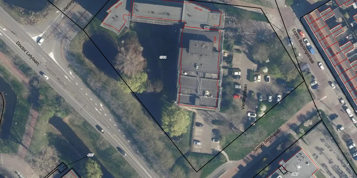 Het adres is gelegen op perceel 3764 in de sectie X en de kadastrale gemeente Leiden. De kadastrale aanduiding is aldus LDN01-X-3764. De oppervlakte van het perceel is 7165 m². Dat is groter dan gemiddeld in Leiden, waar de gemiddelde perceeloppervlakte op 703,94 m² ligt. Het grootste perceel in de kadastrale gemeente is 51,8 ha. Het kleinste perceel heeft een oppervlakte van 0 m². Op het perceel zijn 155 adressen aanwezig. De laatste wijziging in het de Basisregistratie Kadaster (BRK) was op 05-12-2008.