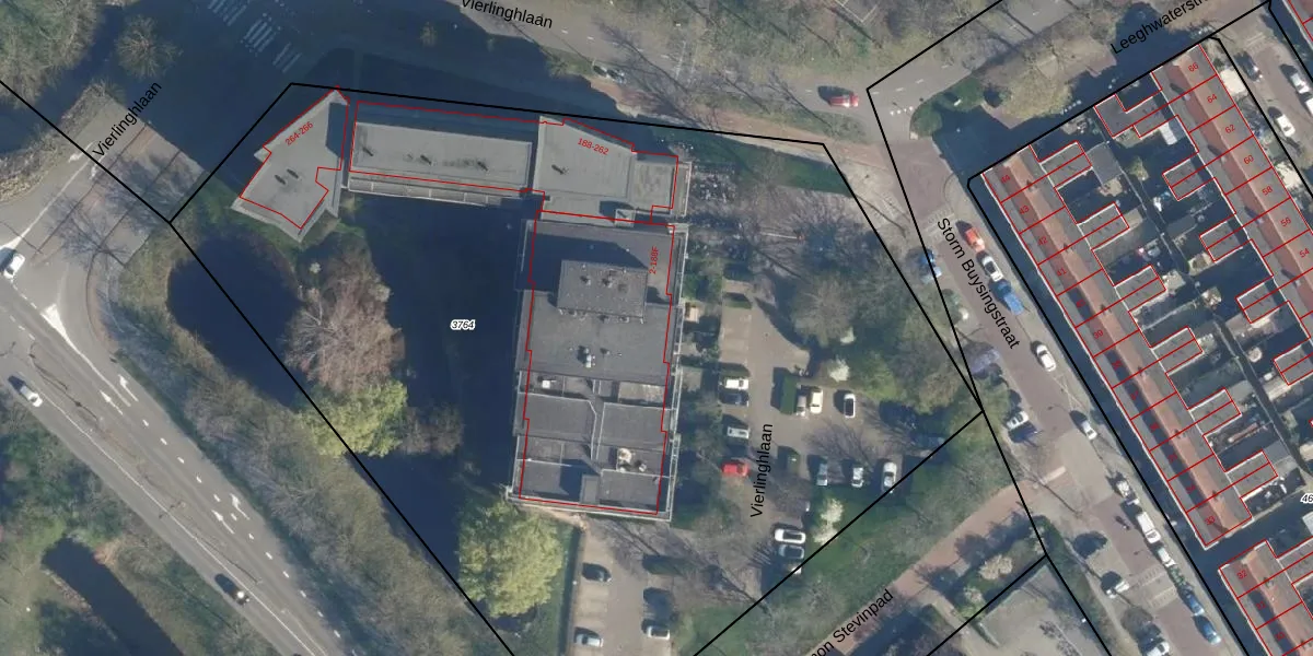 Vierlinghlaan 18 is gelegen op kadastraal perceel LDN01X3764. Deze kadastrale aanduiding is uniek en wordt gebruikt door het Kadaster om eigendomsrechten en andere zakelijke rechten vast te leggen. Het perceel maakt onderdeel uit van de kadastrale gemeente Leiden.