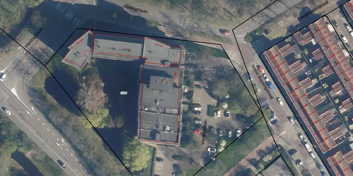 Vierlinghlaan 20 is gelegen op kadastraal perceel LDN01X3764. Deze kadastrale aanduiding is uniek en wordt gebruikt door het Kadaster om eigendomsrechten en andere zakelijke rechten vast te leggen. Het perceel maakt onderdeel uit van de kadastrale gemeente Leiden.
