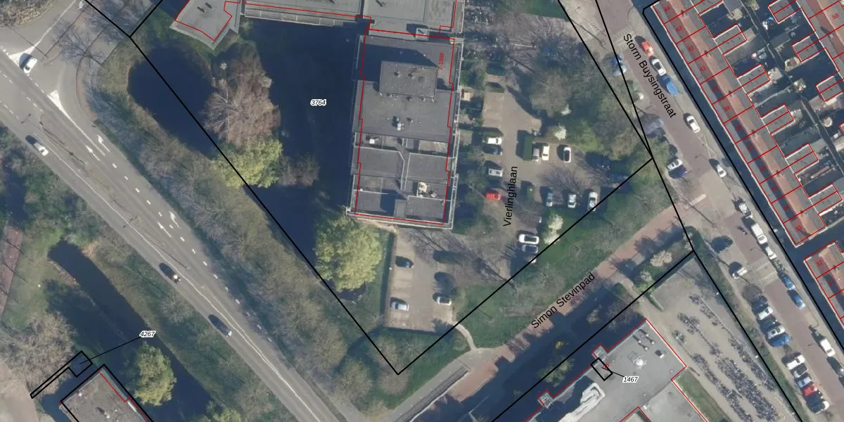 Het perceel waarop het adres ligt is LDN01-X-3764. De afkorting 'LDN01' staat voor kadastrale gemeente Leiden. De oppervlakte van het perceel is 7165 m². Dat is groter dan gemiddeld in Leiden, waar de gemiddelde perceeloppervlakte op 703,94 m² ligt. De grootste perceeloppervlakte in de kadastrale gemeente is 51,8 ha. De kleinste oppervlakte bedraagt 0 m². Er zijn 155 adressen aanwezig op het perceel. De laatste wijziging in het de Basisregistratie Kadaster (BRK) was op 05-12-2008.