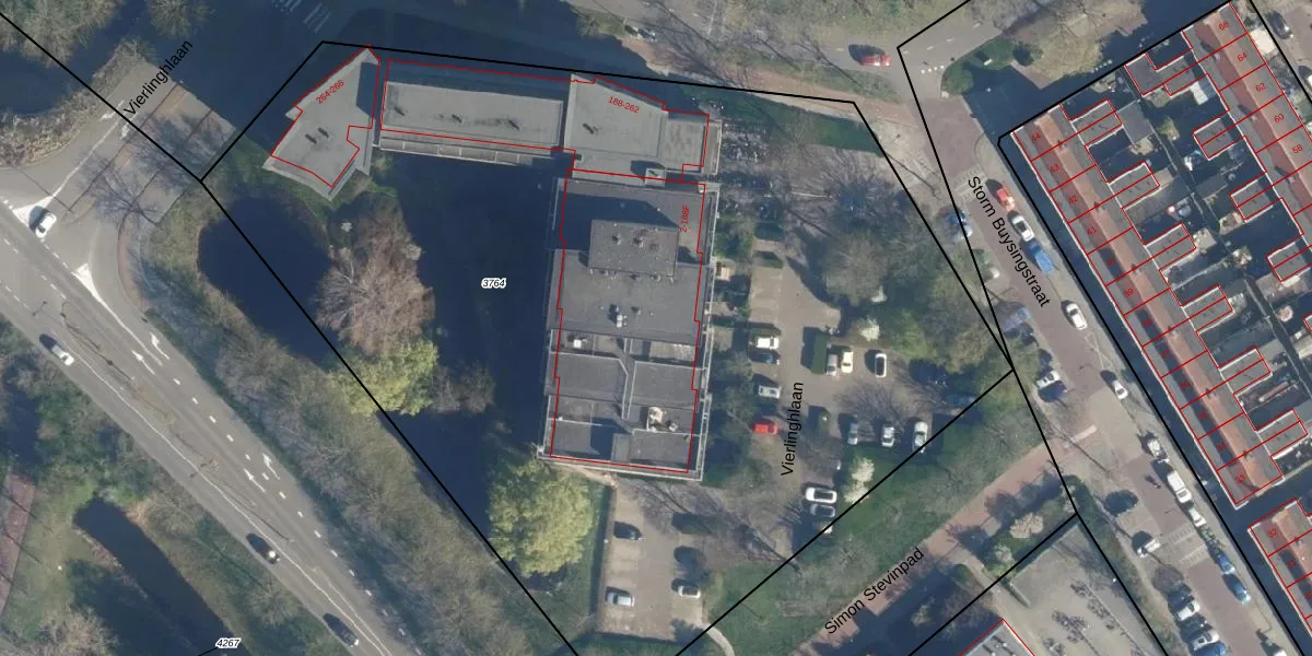 Vierlinghlaan 54 is gelegen op kadastraal perceel LDN01X3764. Deze kadastrale aanduiding is uniek en wordt gebruikt door het Kadaster om eigendomsrechten en andere zakelijke rechten vast te leggen. Het perceel maakt onderdeel uit van de kadastrale gemeente Leiden.