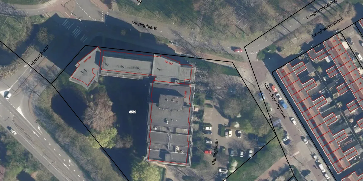 Vierlinghlaan 72 is gelegen op kadastraal perceel LDN01X3764. Deze kadastrale aanduiding is uniek en wordt gebruikt door het Kadaster om eigendomsrechten en andere zakelijke rechten vast te leggen. Het perceel maakt onderdeel uit van de kadastrale gemeente Leiden.