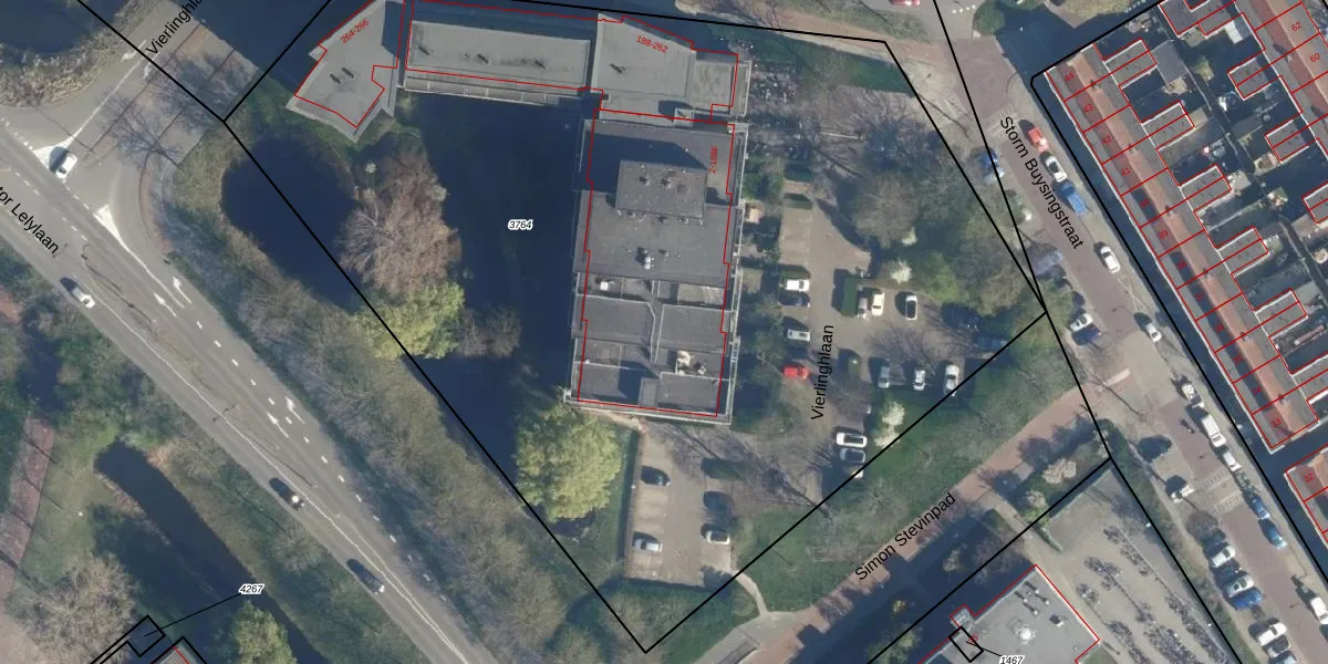 Vierlinghlaan 84 is gelegen op kadastraal perceel LDN01X3764. Deze kadastrale aanduiding is uniek en wordt gebruikt door het Kadaster om eigendomsrechten en andere zakelijke rechten vast te leggen. Het perceel maakt onderdeel uit van de kadastrale gemeente Leiden.