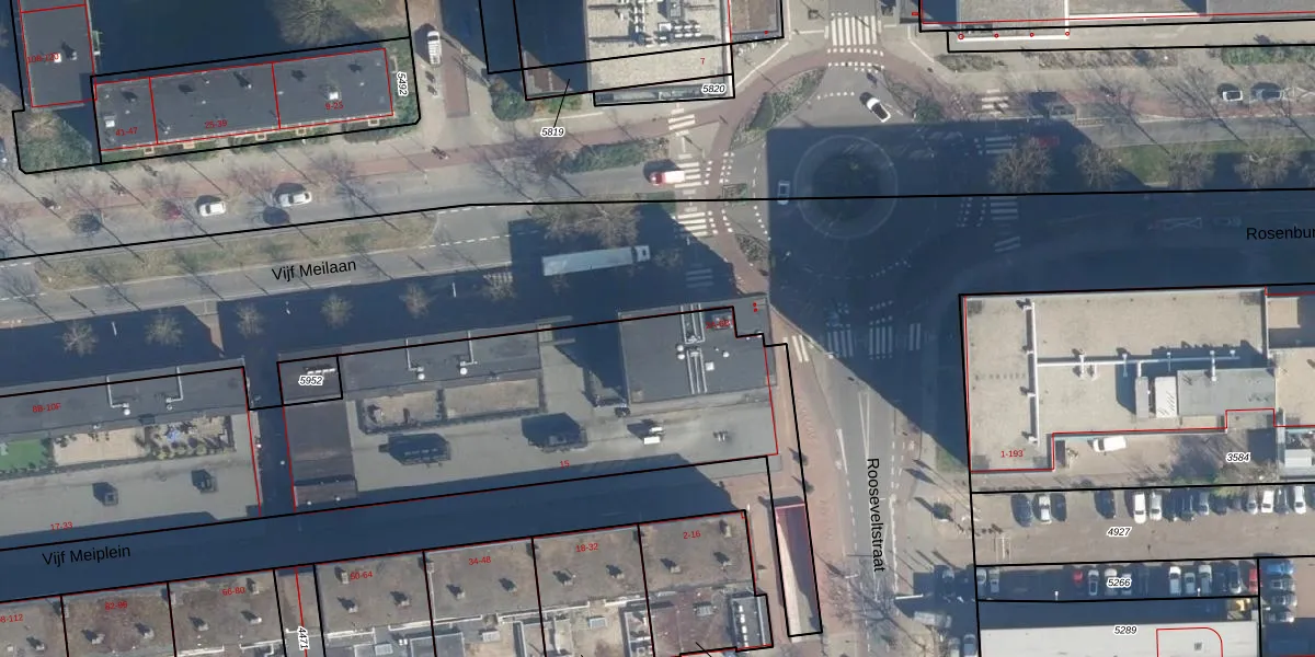 Het perceel waarop Vijf Meilaan 2-B staat heeft een oppervlakte van 5126 m². Dit is een zeer groot perceel. De perceeloppervlakte wordt geregistreerd door het Kadaster. Gedetailleerde informatie over de maten van dit perceel kunt u vinden in het rapport Kadastrale kaart met maatvoering van Vijf Meilaan 2-B.