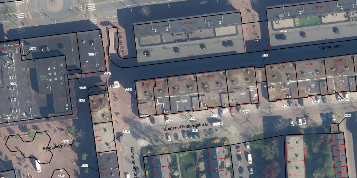 Het perceel waarop Vijf Meiplein 170 staat heeft een oppervlakte van 340 m². Dit is een groot perceel. De perceeloppervlakte wordt geregistreerd door het Kadaster. Gedetailleerde informatie over de maten van dit perceel kunt u vinden in het rapport Kadastrale kaart met maatvoering van Vijf Meiplein 170.