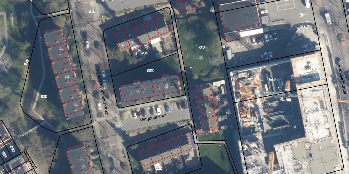 Vingboonshof 12 is gelegen op kadastraal perceel LDN01O5421. Deze kadastrale aanduiding is uniek en wordt gebruikt door het Kadaster om eigendomsrechten en andere zakelijke rechten vast te leggen. Het perceel maakt onderdeel uit van de kadastrale gemeente Leiden.