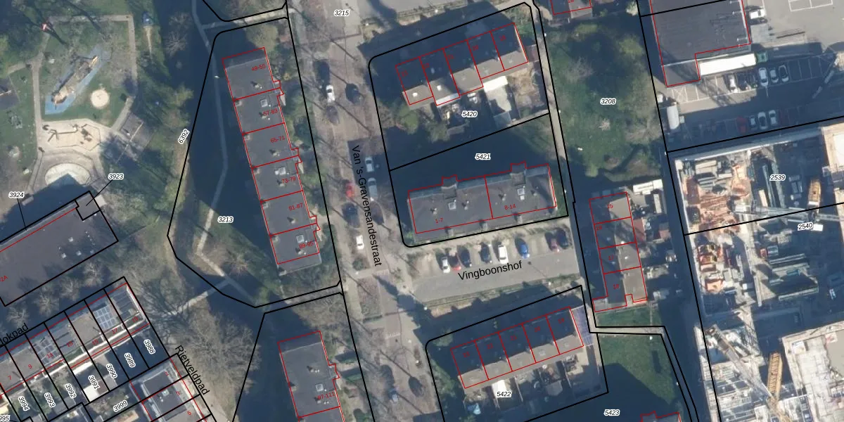 Vingboonshof 3 is gelegen op kadastraal perceel LDN01O5421. Deze kadastrale aanduiding is uniek en wordt gebruikt door het Kadaster om eigendomsrechten en andere zakelijke rechten vast te leggen. Het perceel maakt onderdeel uit van de kadastrale gemeente Leiden.