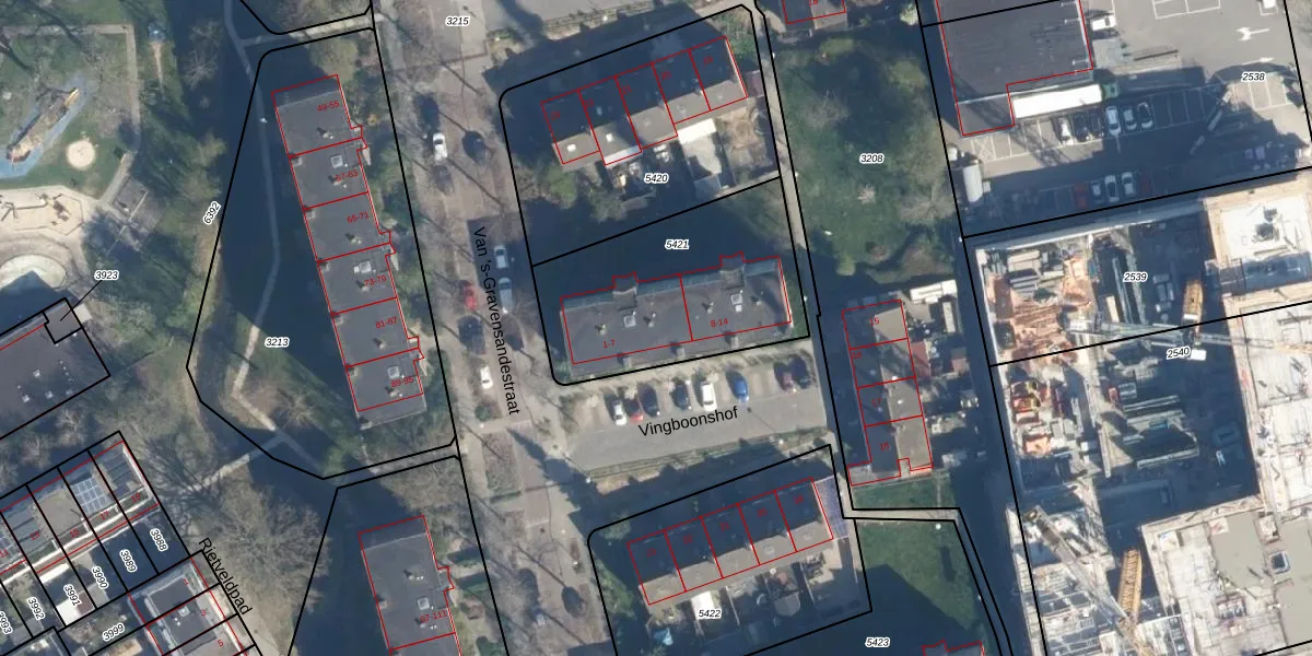 Vingboonshof 5 is gelegen op kadastraal perceel LDN01O5421. Deze kadastrale aanduiding is uniek en wordt gebruikt door het Kadaster om eigendomsrechten en andere zakelijke rechten vast te leggen. Het perceel maakt onderdeel uit van de kadastrale gemeente Leiden.