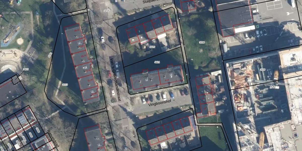 Vingboonshof 7 is gelegen op kadastraal perceel LDN01O5421. Deze kadastrale aanduiding is uniek en wordt gebruikt door het Kadaster om eigendomsrechten en andere zakelijke rechten vast te leggen. Het perceel maakt onderdeel uit van de kadastrale gemeente Leiden.
