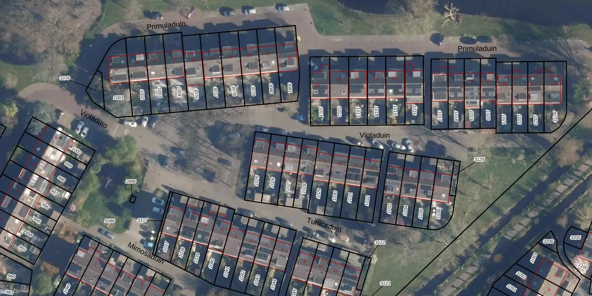 Gebruik de zoekbalk of klik op een perceel voor informatie over de adressen binnen dit perceel.