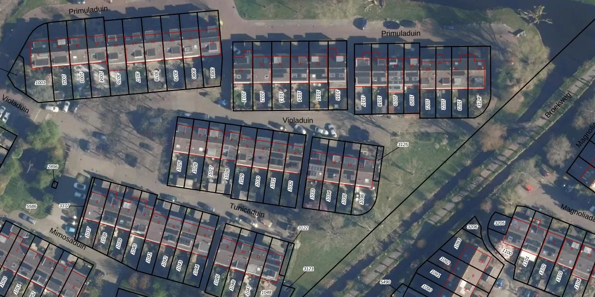 Gebruik de zoekbalk of klik op een perceel voor informatie over de adressen binnen dit perceel.