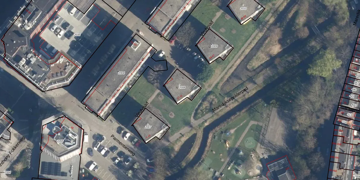 Het perceel waarop Virulypad 31 staat heeft een oppervlakte van 215 m². Dit is een middelgroot perceel. De perceeloppervlakte wordt geregistreerd door het Kadaster. Gedetailleerde informatie over de maten van dit perceel kunt u vinden in het rapport Kadastrale kaart met maatvoering van Virulypad 31.