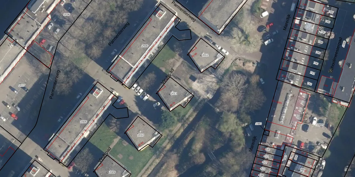 Het perceel waarop Virulypad 77 staat heeft een oppervlakte van 215 m². Dit is een middelgroot perceel. De perceeloppervlakte wordt geregistreerd door het Kadaster. Gedetailleerde informatie over de maten van dit perceel kunt u vinden in het rapport Kadastrale kaart met maatvoering van Virulypad 77.