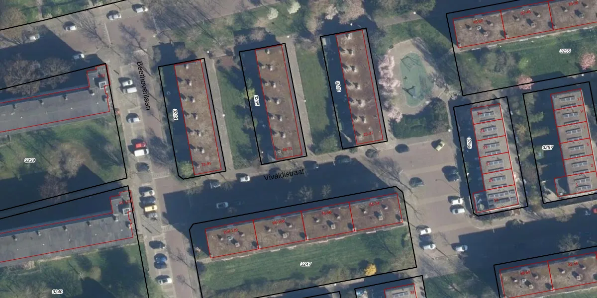 Het perceel waarop Vivaldistraat 49 staat heeft een oppervlakte van 590 m². Dit is een groot perceel. De perceeloppervlakte wordt geregistreerd door het Kadaster. Gedetailleerde informatie over de maten van dit perceel kunt u vinden in het rapport Kadastrale kaart met maatvoering van Vivaldistraat 49.