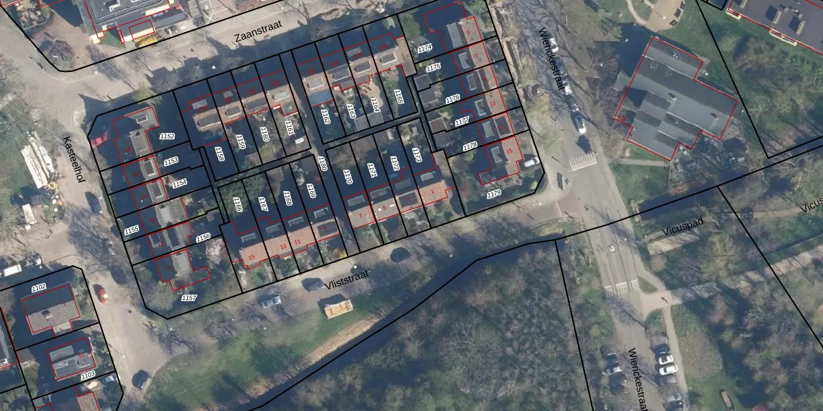 Het perceel waarop Vliststraat 3 staat heeft een oppervlakte van 159 m². Dit is een middelgroot perceel. De perceeloppervlakte wordt geregistreerd door het Kadaster. Gedetailleerde informatie over de maten van dit perceel kunt u vinden in het rapport Kadastrale kaart met maatvoering van Vliststraat 3.