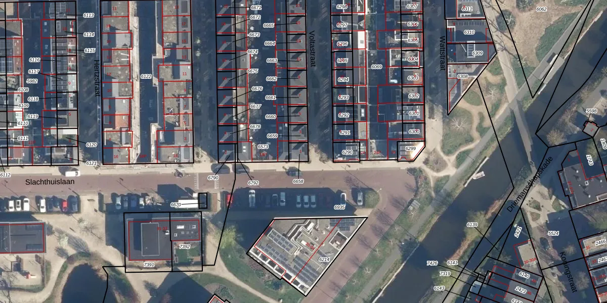 Het perceel waarop Voltastraat 1 staat heeft een oppervlakte van 40 m². Dit is een klein perceel. De perceeloppervlakte wordt geregistreerd door het Kadaster. Gedetailleerde informatie over de maten van dit perceel kunt u vinden in het rapport Kadastrale kaart met maatvoering van Voltastraat 1.