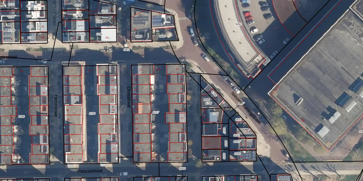 Het adres is gelegen op perceel 6207 in de sectie K en de kadastrale gemeente Leiden. De kadastrale aanduiding is aldus LDN01-K-6207. Het perceel is met 1620 m² relatief groot. Het gemiddelde ligt in de kadastrale gemeente Leiden op 704,75 m². De grootste perceeloppervlakte in de kadastrale gemeente is 51,8 ha. De kleinste oppervlakte bedraagt 0 m². Er zijn 21 adressen aanwezig op het perceel. In de Basisregistratie Kadaster (BRK) werden de grenzen van het perceel geregistreerd op 28-10-2014.