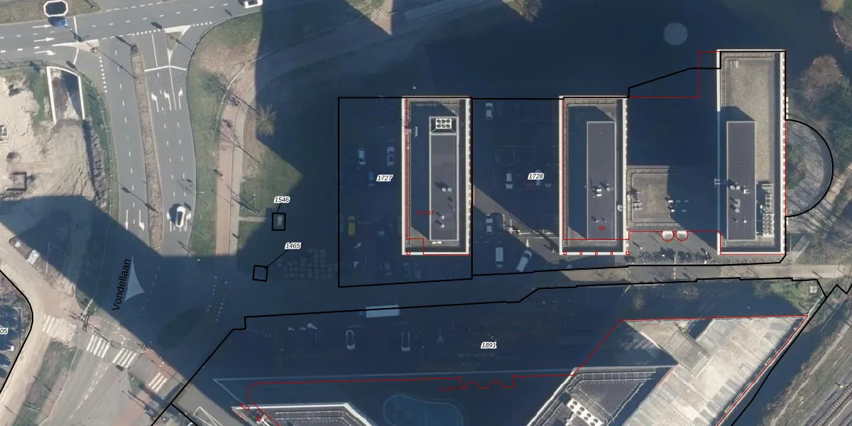 Het perceel waarop Vondellaan 51 staat heeft een oppervlakte van 1363 m². Dit is een zeer groot perceel. De perceeloppervlakte wordt geregistreerd door het Kadaster. Gedetailleerde informatie over de maten van dit perceel kunt u vinden in het rapport Kadastrale kaart met maatvoering van Vondellaan 51.