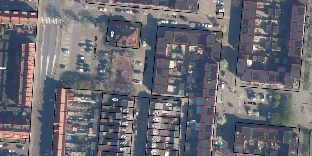 Het adres is gelegen op perceel 1905 in de sectie N en de kadastrale gemeente Leiden. De kadastrale aanduiding is aldus LDN01-N-1905. Het perceel is met 3800 m² relatief groot. Het gemiddelde ligt in de kadastrale gemeente Leiden op 703,94 m². Het kleinste perceel in de kadastrale gemeente is 0 m² groot. De grootste perceeloppervlakte is 51,8 ha. Op het perceel zijn 38 adressen aanwezig. De huidige grenzen van het perceel zijn digitaal in de Basisregistratie Kadaster (BRK) geregistreerd op 22-08-2003.
