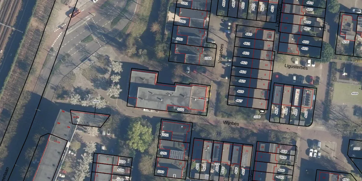 Vossebes 9 is gelegen op kadastraal perceel LDN01S3102. Deze kadastrale aanduiding is uniek en wordt gebruikt door het Kadaster om eigendomsrechten en andere zakelijke rechten vast te leggen. Het perceel maakt onderdeel uit van de kadastrale gemeente Leiden.